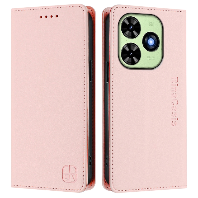 Funda de Cuero para Tecno Spark Go 2024 4G Rc01 con Doble Pliegue y Succión Magnética Rfid (Rosa)