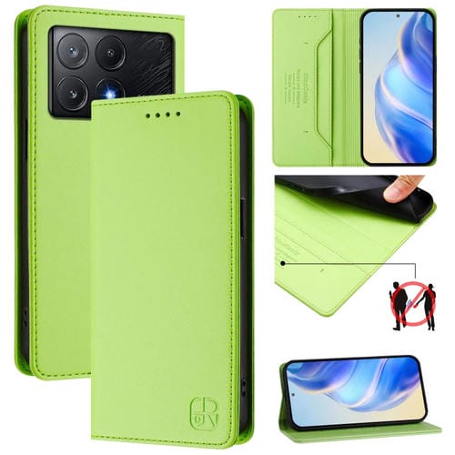 Funda de Cuero con Doble Pliegue y Succión Magnética para Teléfono Xiaomi Poco X6 Pro/Redmi K70E Rc01 (Verde Hierba)