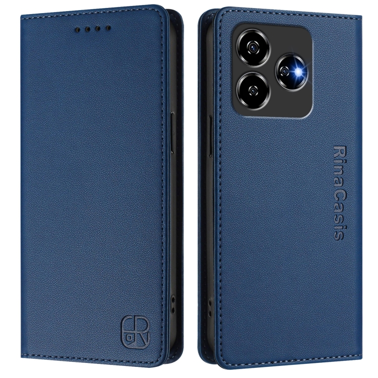 Funda de Cuero con Doble Pliegue y Succión Magnética para ZTE Blade V60 4G Axon 60 4G Rc01 (Azul Oscuro)