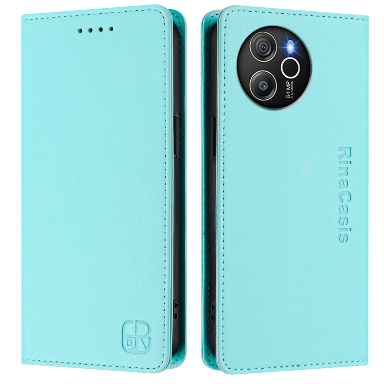 Funda de Cuero con Doble Pliegue y Succión Magnética Rfid para BlackView Shark 8 y Oscal Tiger 12 Rc01 (Verde Menta)