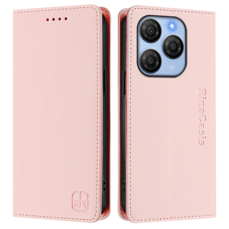 Funda de Cuero con Doble Pliegue y Succión Magnética RFID para BlackView Shark 9 Rc01 (Rosa)