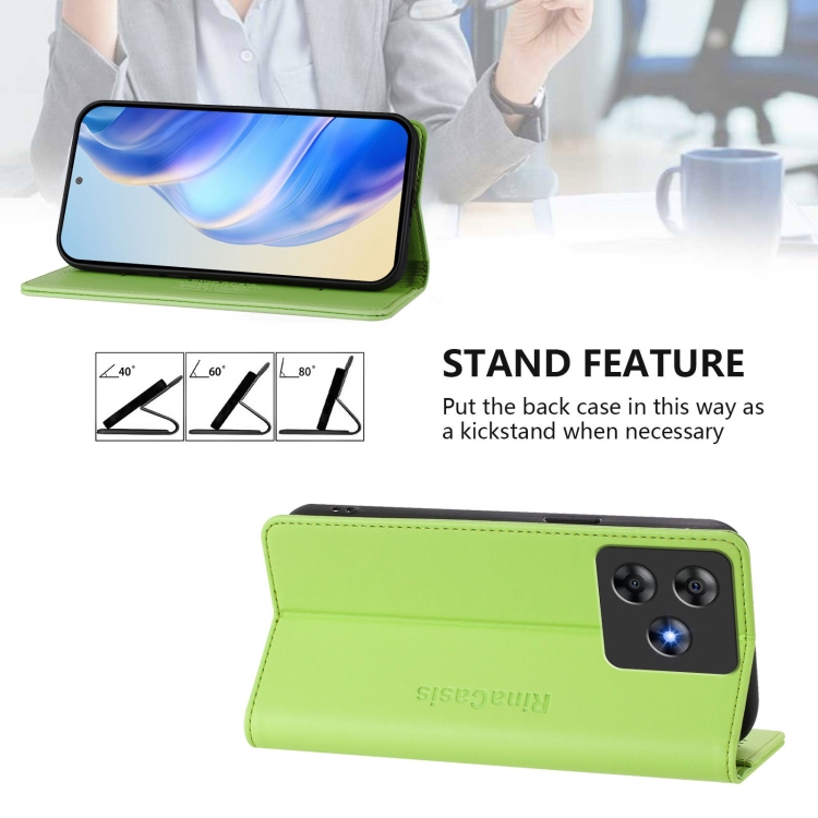 Funda de Cuero con Doble Pliegue y Succión Magnética Rfid para BlackView Wave 8C Rc01 (Verde)
