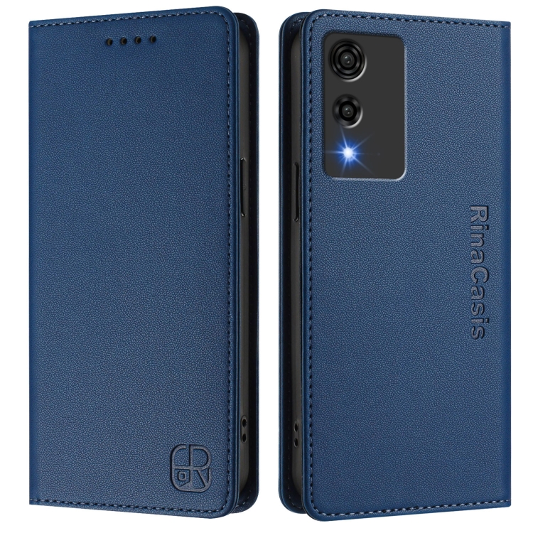 Funda de Cuero para Cubot A10 Rc01 con Doble Pliegue y Succión Magnética Rfid (Azul Oscuro)
