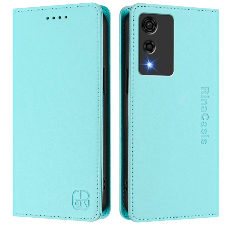 Funda de Cuero con Doble Pliegue y Succión Magnética RFID para Cubot A10 Rc01 (Verde Menta)