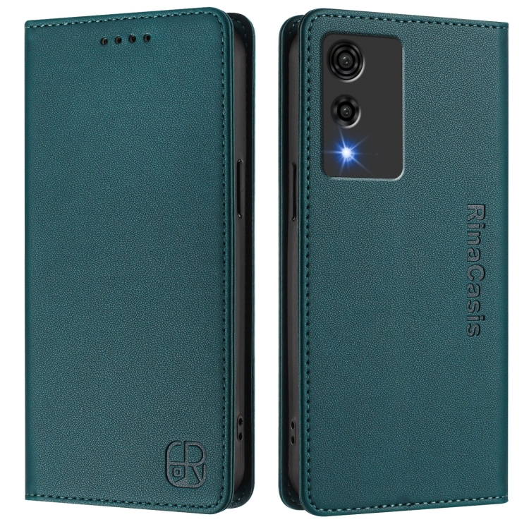 Funda de Cuero para Cubot A10 Rc01 con Doble Pliegue y Succión Magnética Rfid (Verde Oscuro)