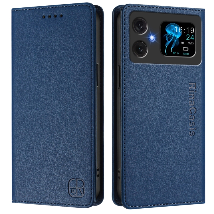 Funda de Cuero para Cubot A20 Rc01 con Doble Pliegue y Succión Magnética Rfid (Azul Oscuro)