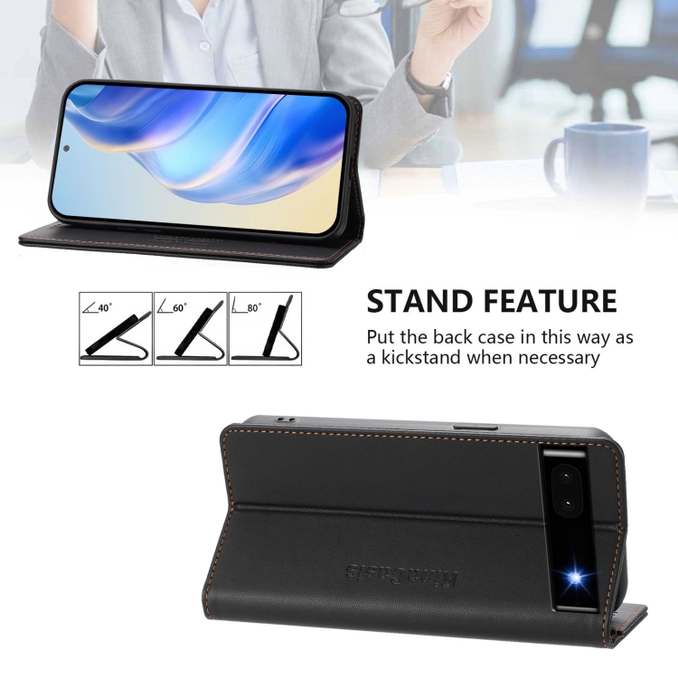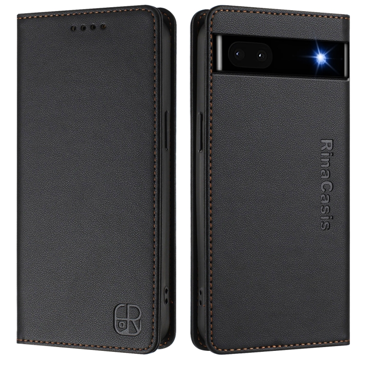 Funda de Cuero con Doble Pliegue y Succión Magnética RFID para Google Pixel 6A Rc01 (Negra)