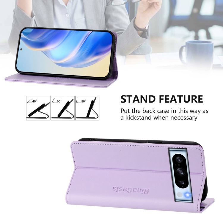 Funda de Cuero con Doble Pliegue y Succión Magnética RFID para Google Pixel 8 Pro Rc01 (Morado Claro)