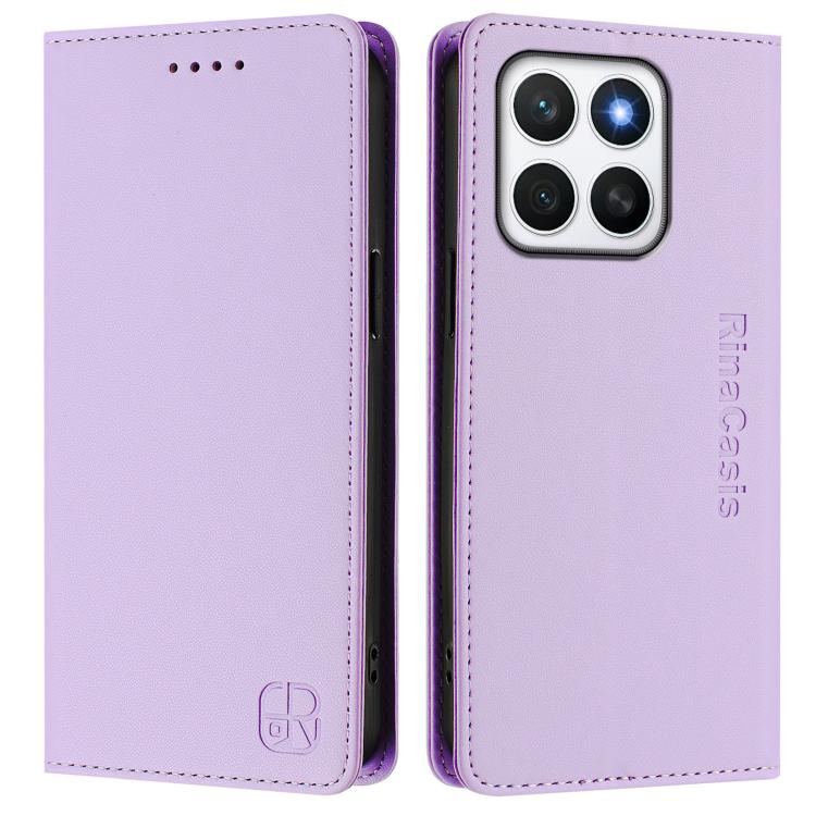 Funda de Cuero con Doble Pliegue y Succión Magnética Rfid para Honor X8C 4G Rc01 (Morado Claro)