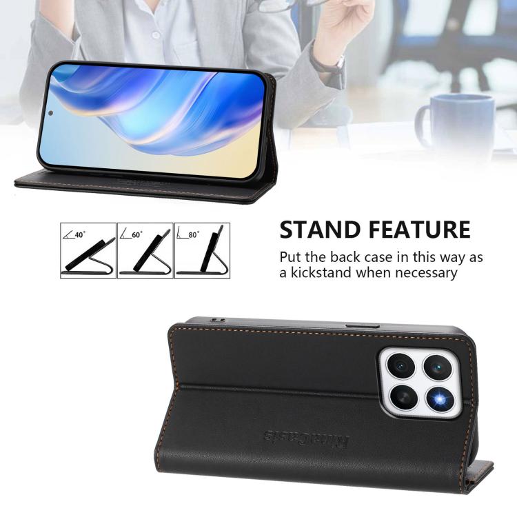 Funda de Cuero con Doble Pliegue y Succión Magnética Rfid para Honor X8C 4G Rc01 (Negro)