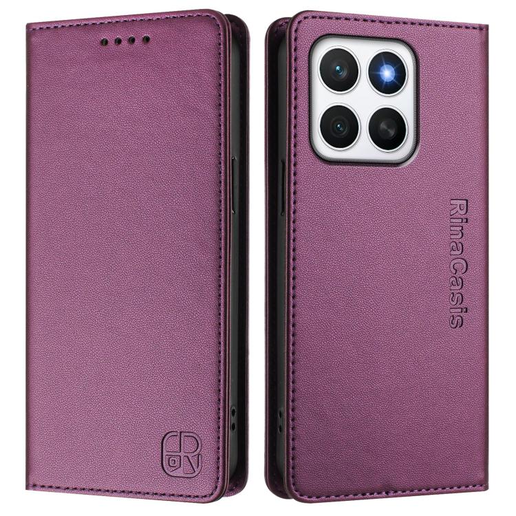 Funda de Cuero con Doble Pliegue y Succión Magnética RFID para Honor X8C 4G Rc01 (Violeta)