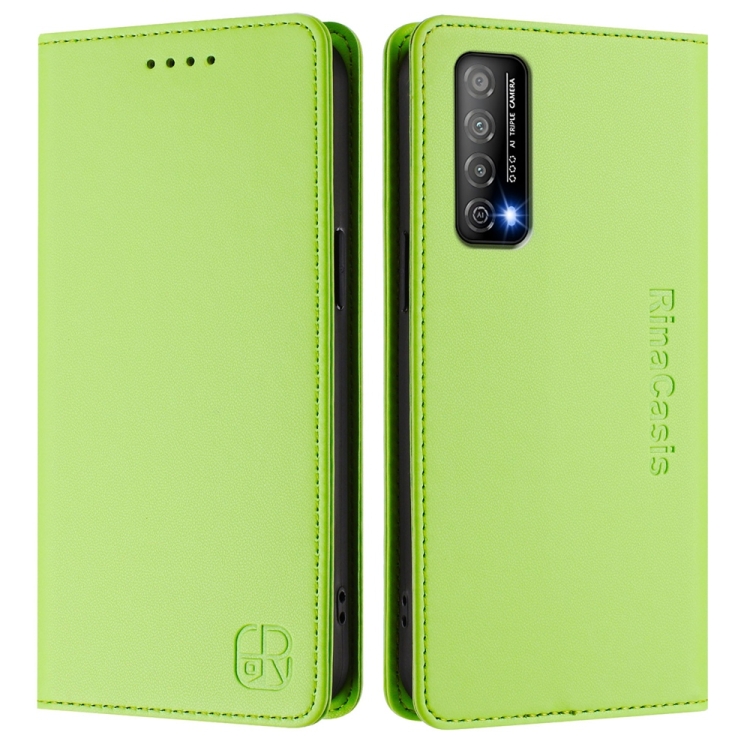 Funda de Cuero con Doble Pliegue y Succión Magnética Rfid para Huawei Enjoy 20 Se Huawei Y7A Rc01 (Verde)