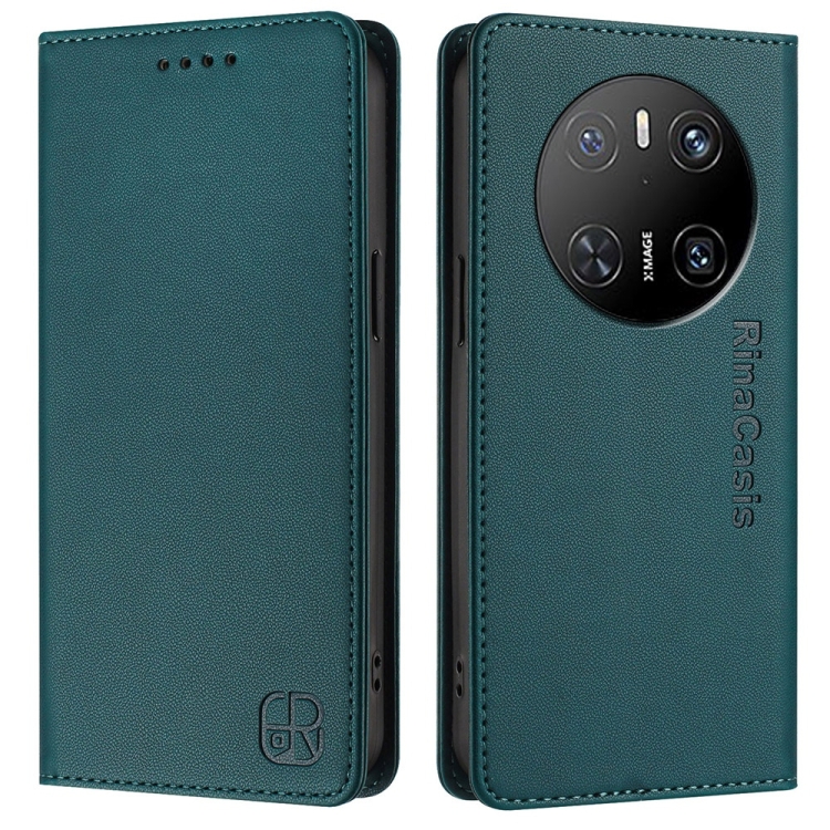 Funda de Cuero con Doble Pliegue y Succión Magnética Rfid para Huawei Mate 70 Rc01 (Verde Oscuro)