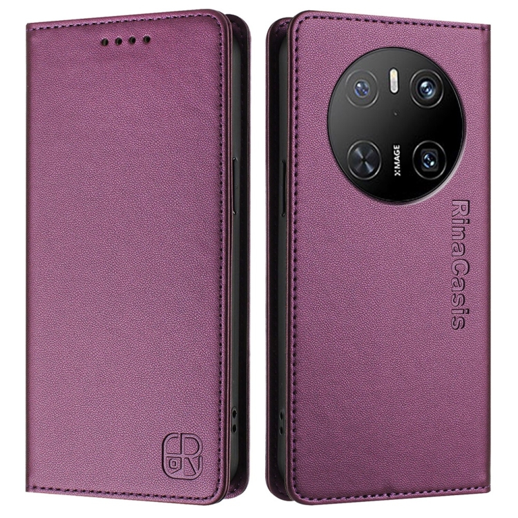 Funda de Cuero con Doble Pliegue y Succión Magnética RFID para Huawei Mate 70 Rc01 (Violeta)