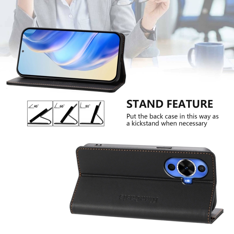 Funda de Cuero con Doble Pliegue y Succión Magnética Rfid para Huawei Nova 12S Global Rc01 (Negra)