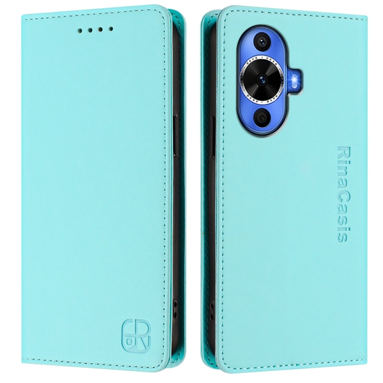 Funda de Cuero con Doble Pliegue y Succión Magnética Rfid para Huawei Nova 12S Global Rc01 (Verde Menta)