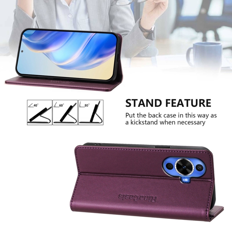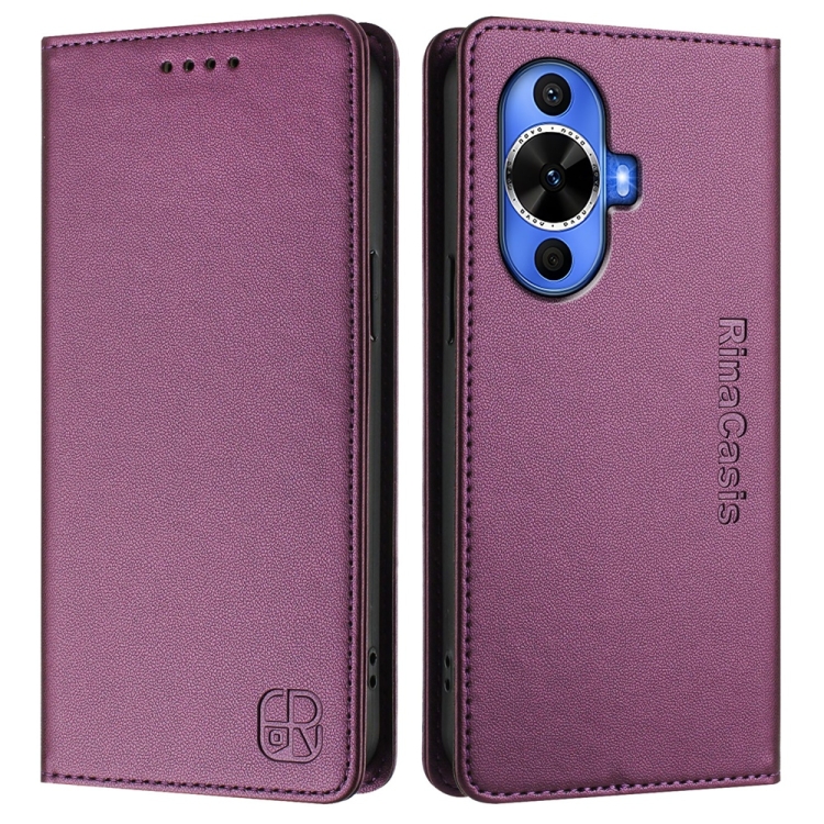 Funda de Cuero Huawei Nova 12S Global Rc01 con Doble Pliegue y Succión Magnética Rfid (Violeta)