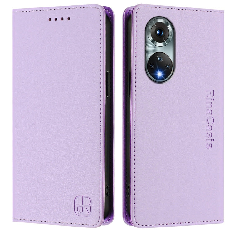 Funda de Cuero con Doble Pliegue y Succión Magnética Rfid para Huawei Nova 9 Rc01 (Morado Claro)