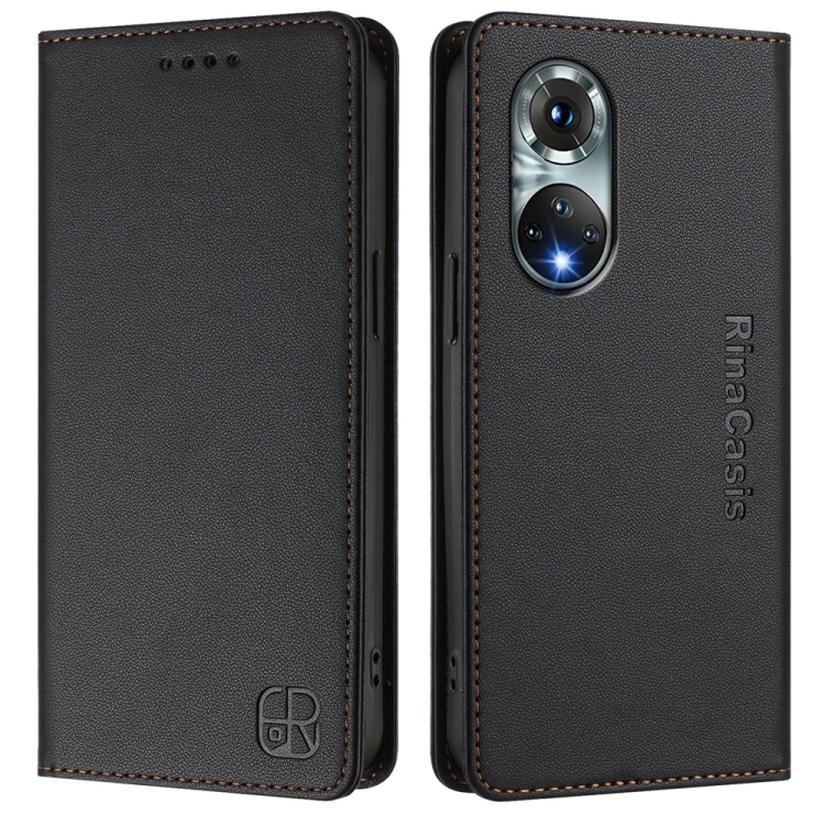 Funda de Cuero Huawei Nova 9 Rc01 con Doble Pliegue y Succión Magnética Rfid (Negra)