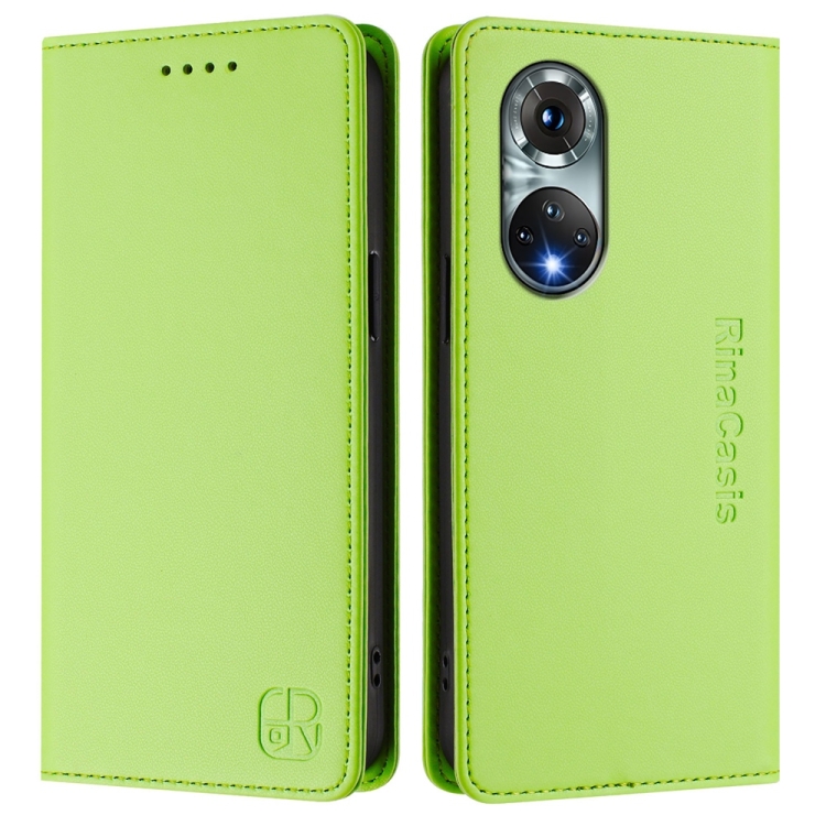 Funda de Cuero Huawei Nova 9 Rc01 con Doble Pliegue y Succión Magnética Rfid (Verde Hierba)