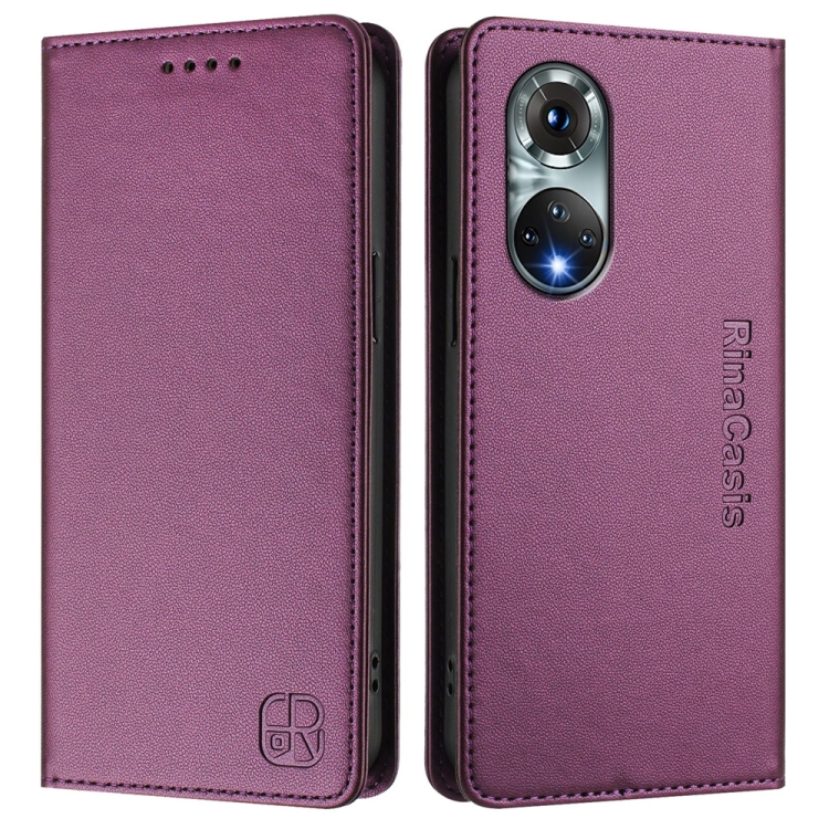 Funda de Cuero con Doble Pliegue y Succión Magnética RFID para Huawei Nova 9 Rc01 (Violeta)