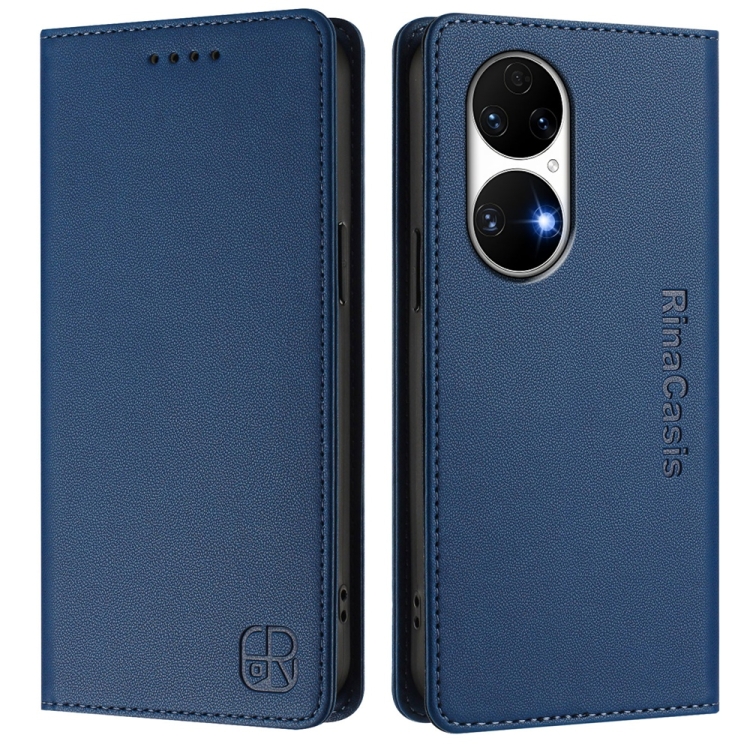 Funda de Cuero con Doble Pliegue y Succión Magnética Rfid para Huawei P50 Rc01 (Azul Oscuro)