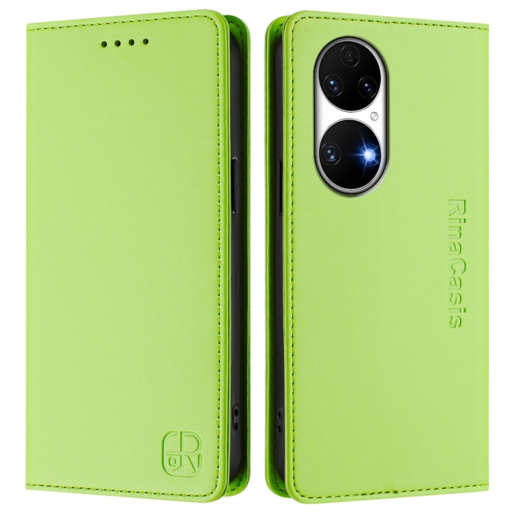 Funda de Cuero Huawei P50 Rc01 con Doble Pliegue Succión Magnética Rfid (Verde Hierba)