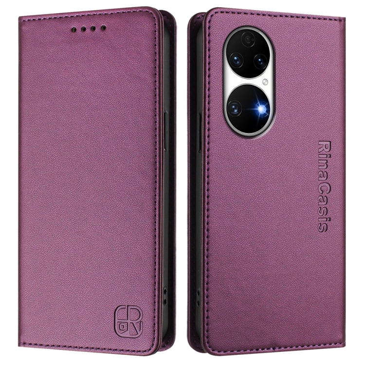 Funda de Cuero Huawei P50 Rc01 con Doble Pliegue y Succión Magnética Rfid (Violeta)