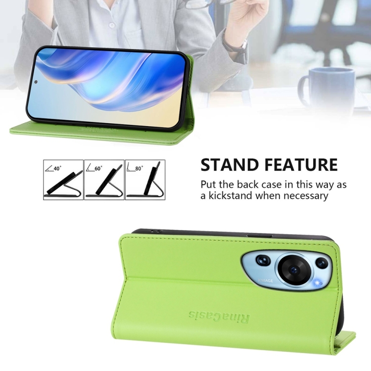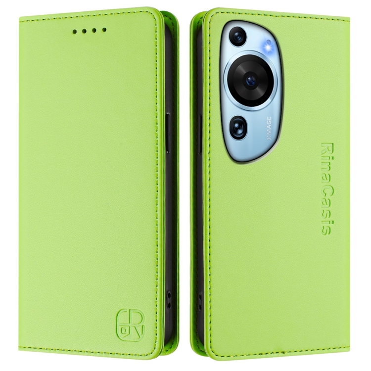 Funda de Cuero Huawei P60 Art Rc01 con Doble Pliegue y Succión Magnética RFID (Verde Hierba)