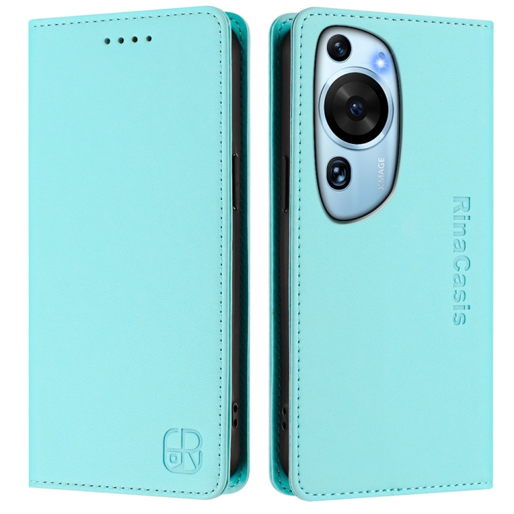 Funda de Cuero Huawei P60 Art Rc01 con Doble Pliegue y Succión Magnética Rfid (Verde Menta)
