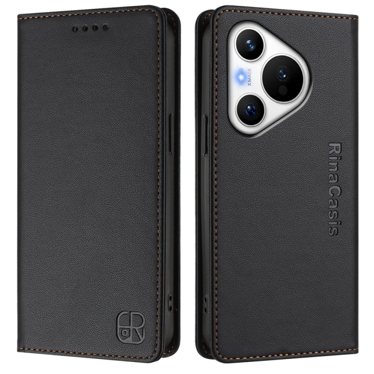 Funda de Cuero con Doble Pliegue y Succión Magnética Rfid para Huawei Pura 70 Rc01 (Negra)