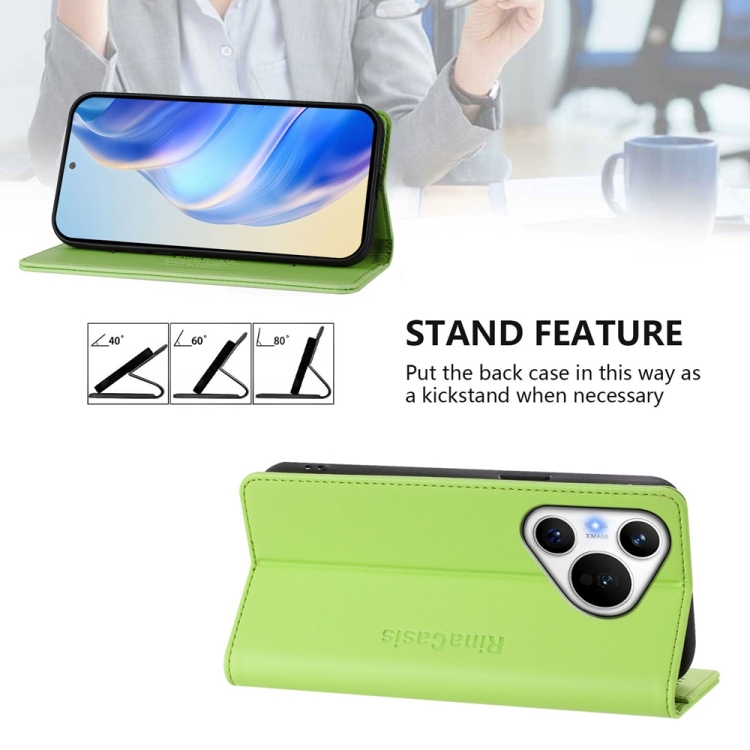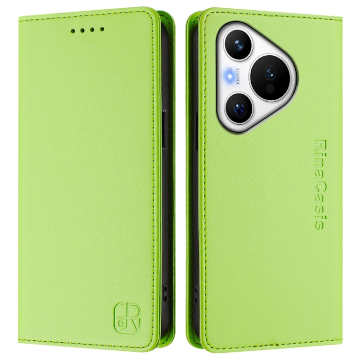 Funda de Cuero Huawei Pura 70 Rc01 con Doble Pliegue y Succión Magnética Rfid (Verde Hierba)