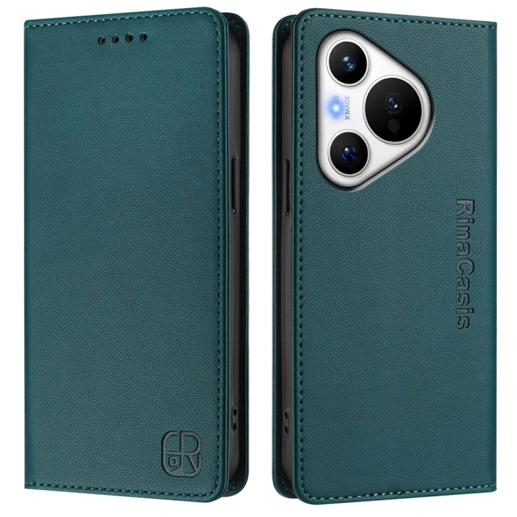 Funda de Cuero con Doble Pliegue y Succión Magnética Rfid para Huawei Pura 70 Rc01 (Verde Oscuro)