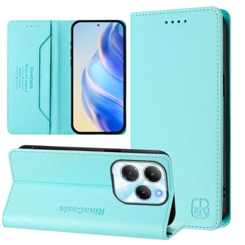 Funda de Cuero con Doble Pliegue y Succión Magnética RFID para Infinix Hot 40 4G y Hot 40 Play Rc01 (Verde Menta)
