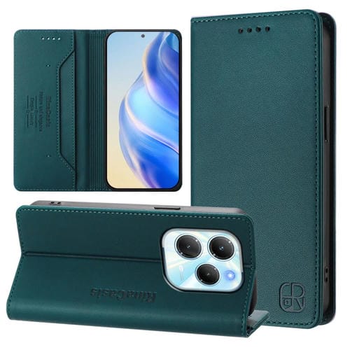 Funda de Cuero Doble Pliegue Succión Magnética Rfid para Infinix Hot 40 4G y Hot 40 Play Rc01 (Verde Oscuro)