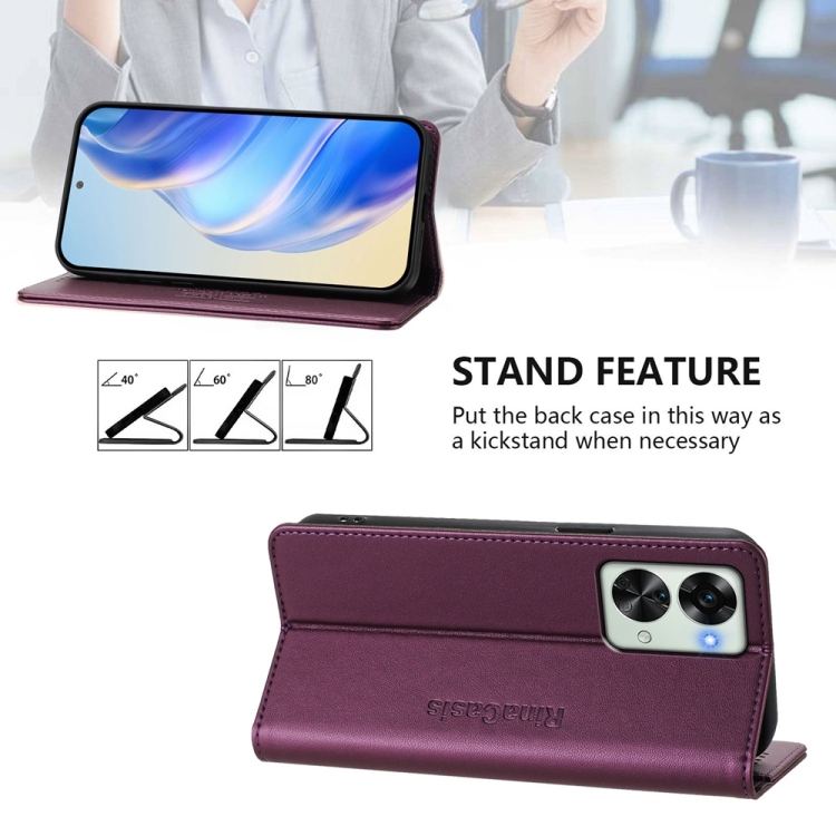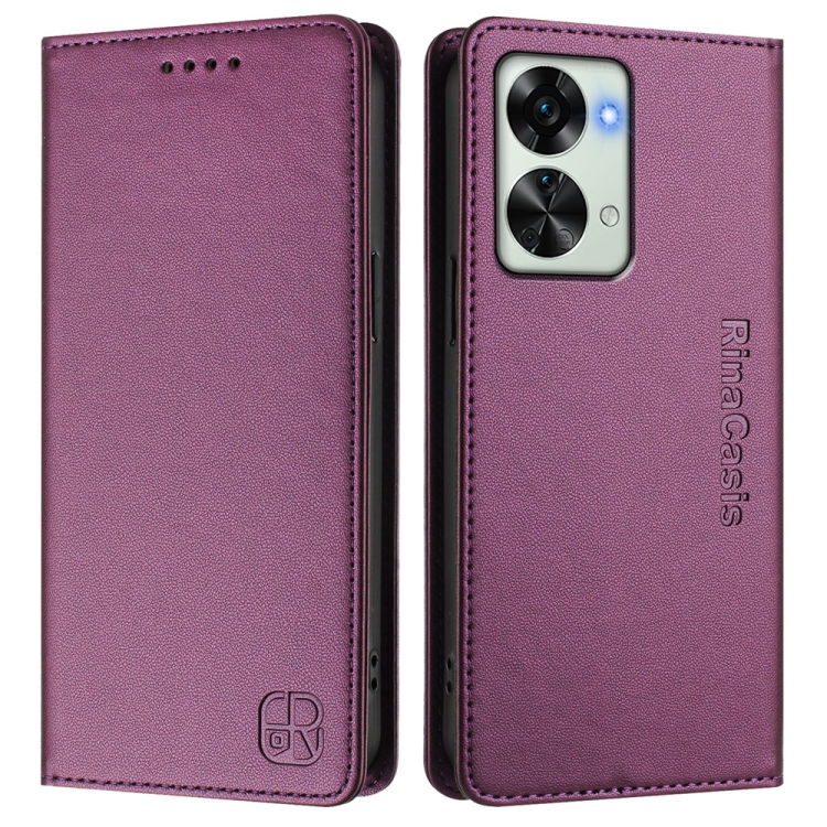 Funda de Cuero con Doble Pliegue y Succión Magnética Rfid para OnePlus Nord 2T Rc01 (Violeta)