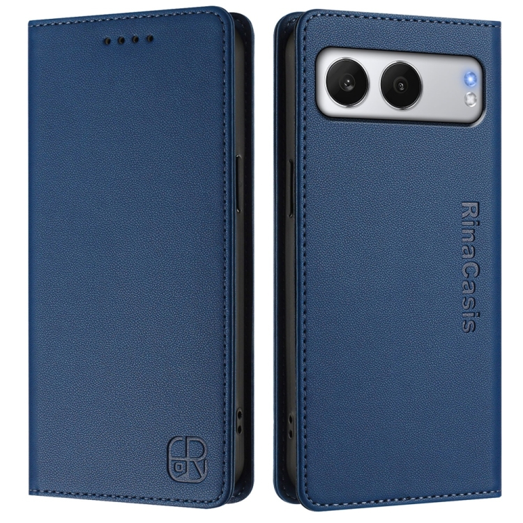 Funda de Cuero con Doble Pliegue y Succión Magnética RFID para OnePlus Nord 4 Rc01 (Azul Oscuro)