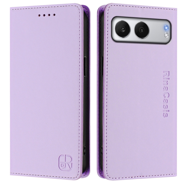 Funda de Cuero para OnePlus Nord 4 Rc01 con Doble Pliegue y Succión Magnética Rfid (Morado Claro)