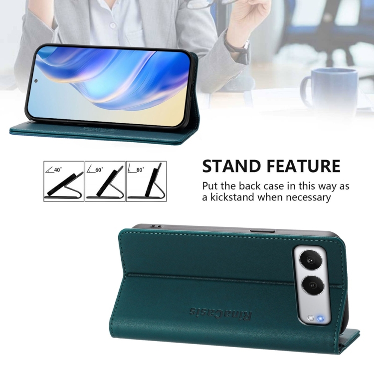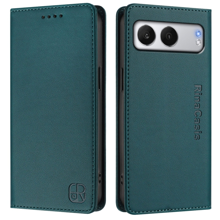 Funda de Cuero con Doble Pliegue y Succión Magnética RFID para OnePlus Nord 4 Rc01 (Verde Oscuro)