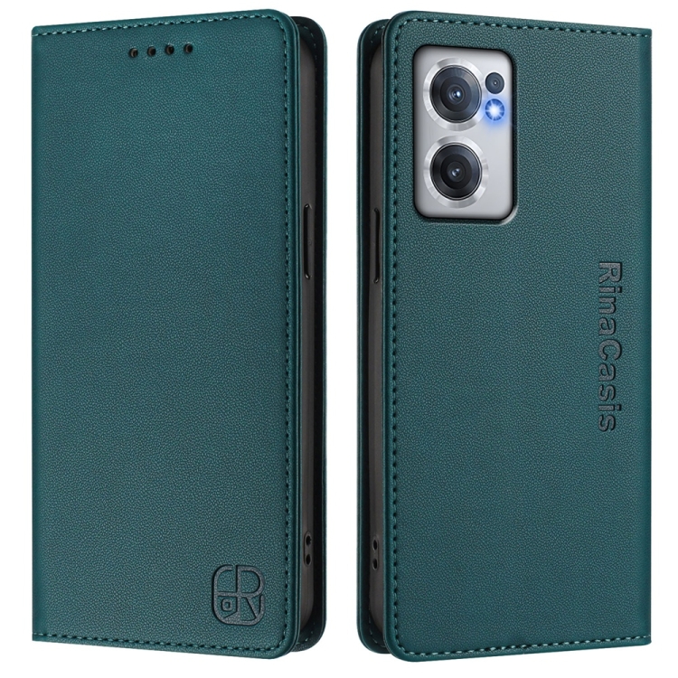 Funda de Cuero con Doble Pliegue y Succión Magnética RFID para OnePlus Nord CE 2 5G Rc01 (Verde Oscuro)