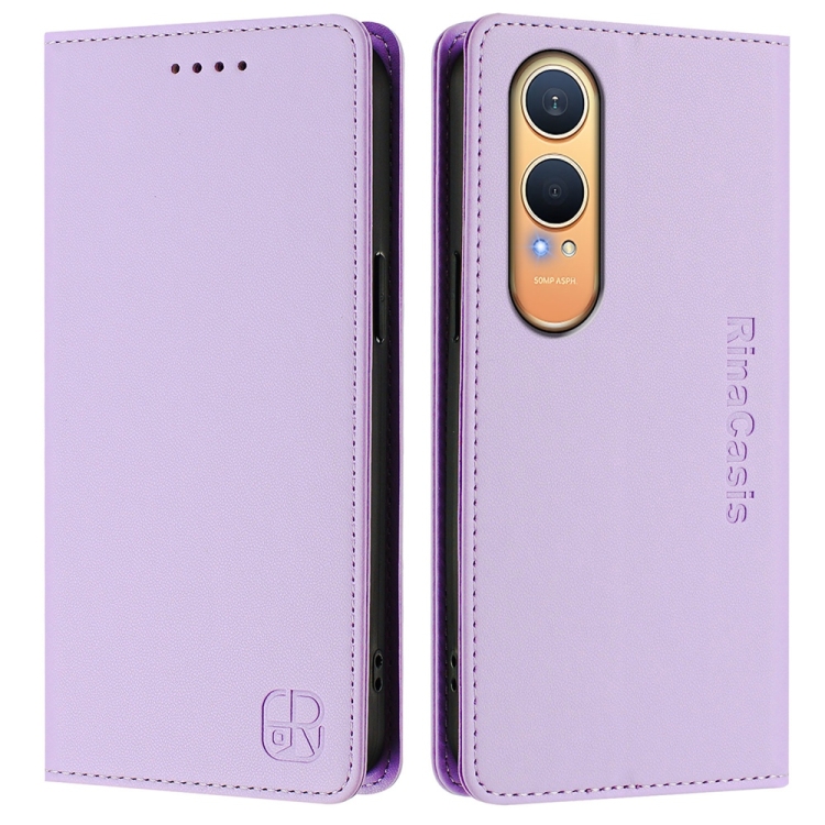 Funda de Cuero con Doble Pliegue y Succión Magnética Rfid para OnePlus Nord Ce4 Lite Rc01 (Morado Claro)