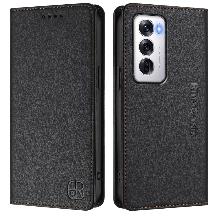 Funda de Cuero con Doble Pliegue y Succión Magnética Rfid para Oppo Reno12 5G Global Rc01 (Negra)