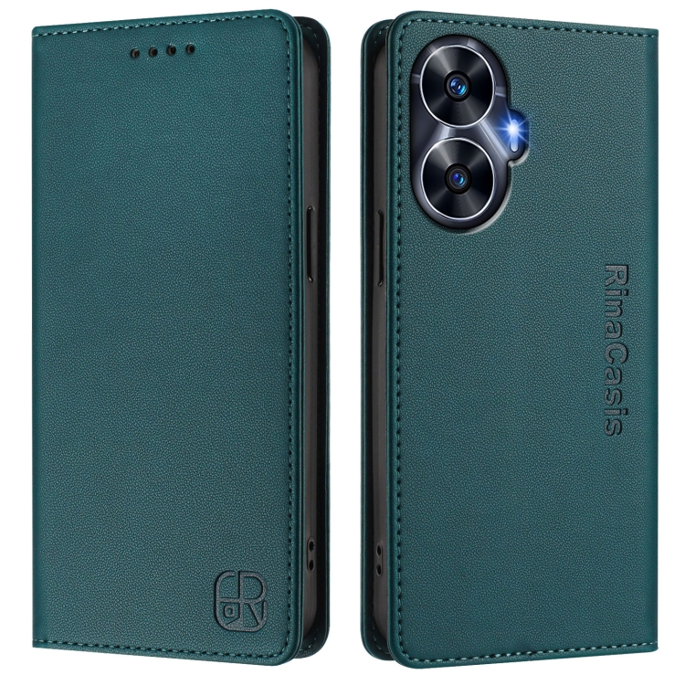 Funda de Cuero con Doble Pliegue y Succión Magnética Rfid para Realme C55 4G Global / Narzo N55 Rc01 (Verde Oscuro)