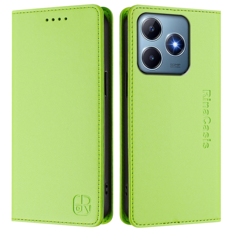 Funda de Cuero con Doble Pliegue y Succión Magnética Rfid para Realme C63/C61 4G Global Rc01 (Verde Hierba)