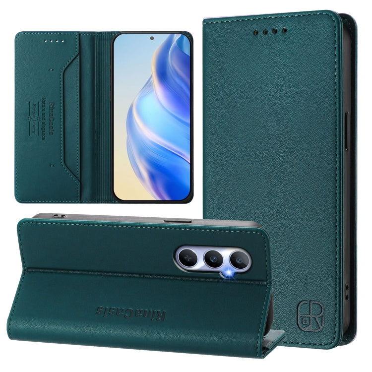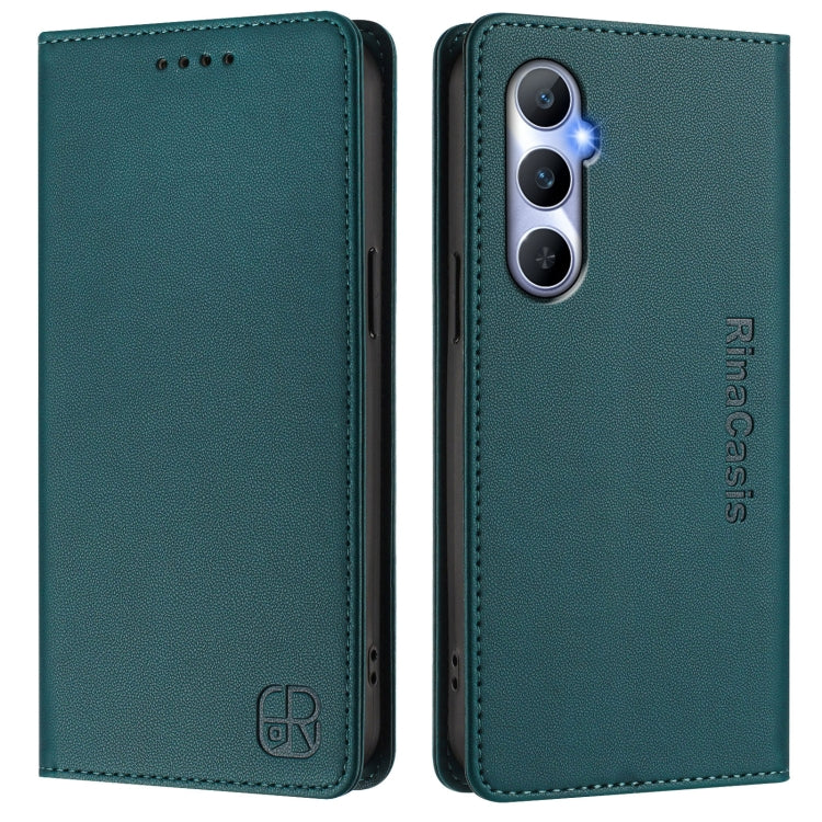 Funda de Cuero con Doble Pliegue y Succión Magnética Rfid para Realme C65 4G Global Rc01 (Verde Oscuro)