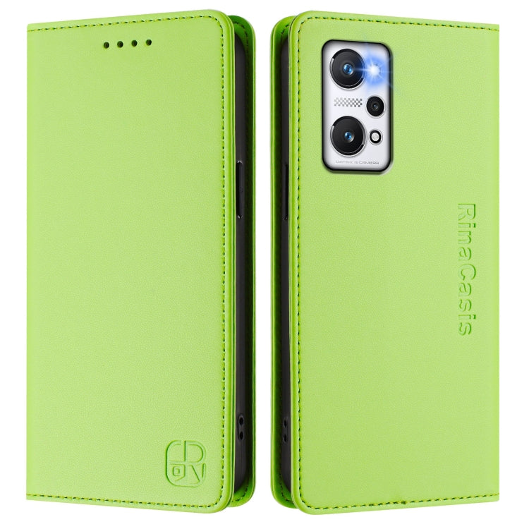 Funda de Cuero con Doble Pliegue y Succión Magnética Rfid para Realme Gt Neo 3T Rc01 (Verde Hierba)