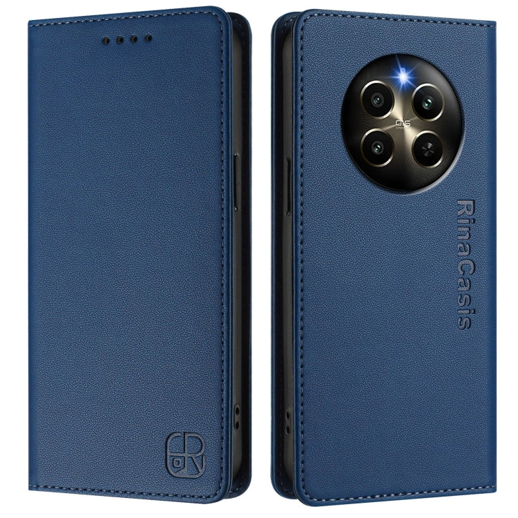 Funda de Cuero con Doble Pliegue y Succión Magnética Rfid para Realme P1 Pro Rc01 (Azul Oscuro)
