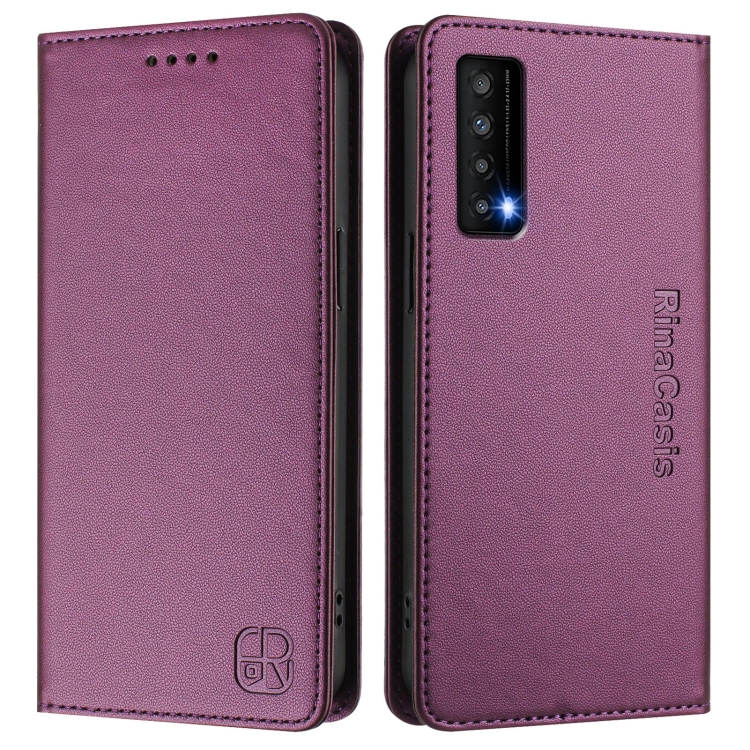 Funda de Cuero con Doble Pliegue y Succión Magnética RFID para TCL Stylus 5G Rc01 (Violeta)