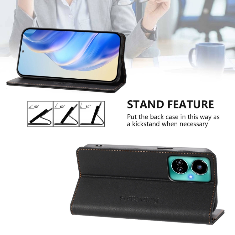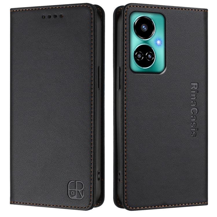 Funda de Cuero Rfid con Doble Pliegue y Succión Magnética para Tecno Camon 19/19 Pro 5G Rc01 (Negra)