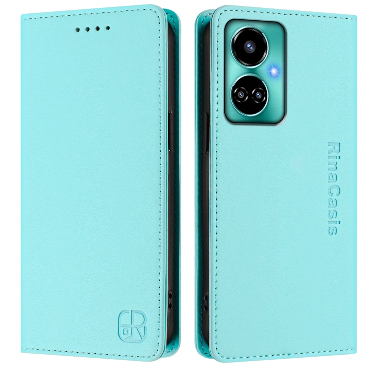 Funda de Cuero Rfid para Tecno Camon 19/19 Pro 5G Rc01 con Doble Pliegue y Succión Magnética (Verde Menta)